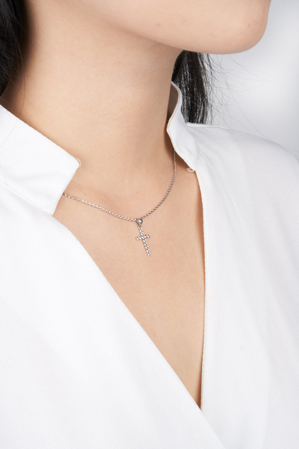 Mặt dây chuyền trắng thánh giá Bảo Tín K&K Vàng kiểu Ý 750