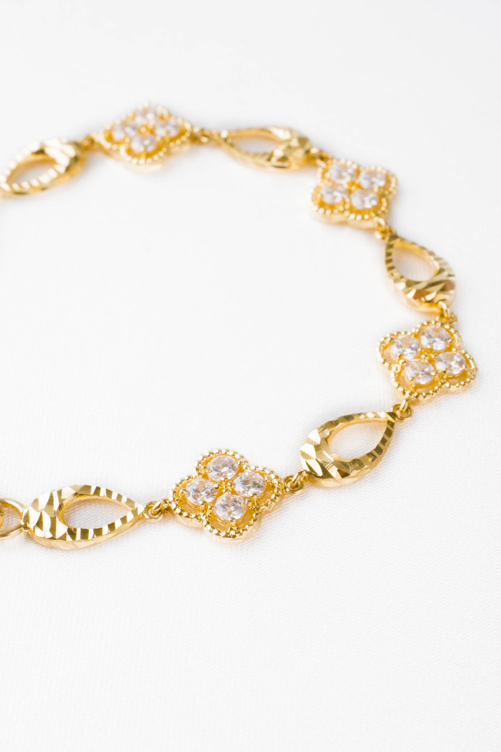 Lắc tay vàng hoa 4 cánh tấm giọt nước móc máy Bảo Tín K&K Vàng 14K đính Đá cao cấp