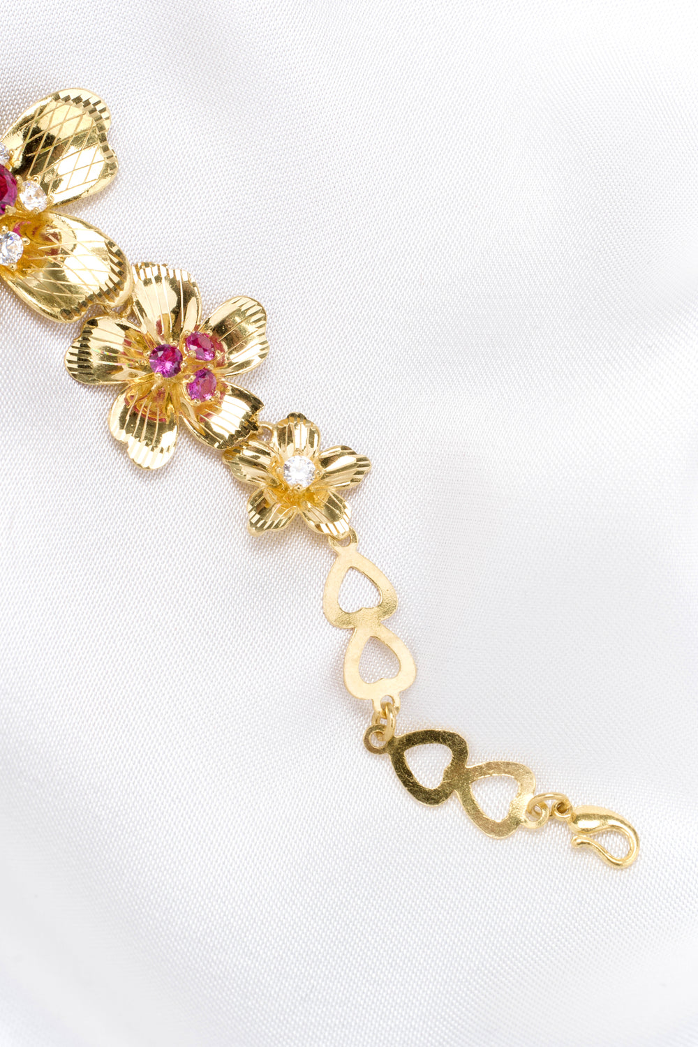 Lắc tay vàng hoa tấm Bảo Tín K&K Vàng 23K đính Đá cao cấp, Đá màu