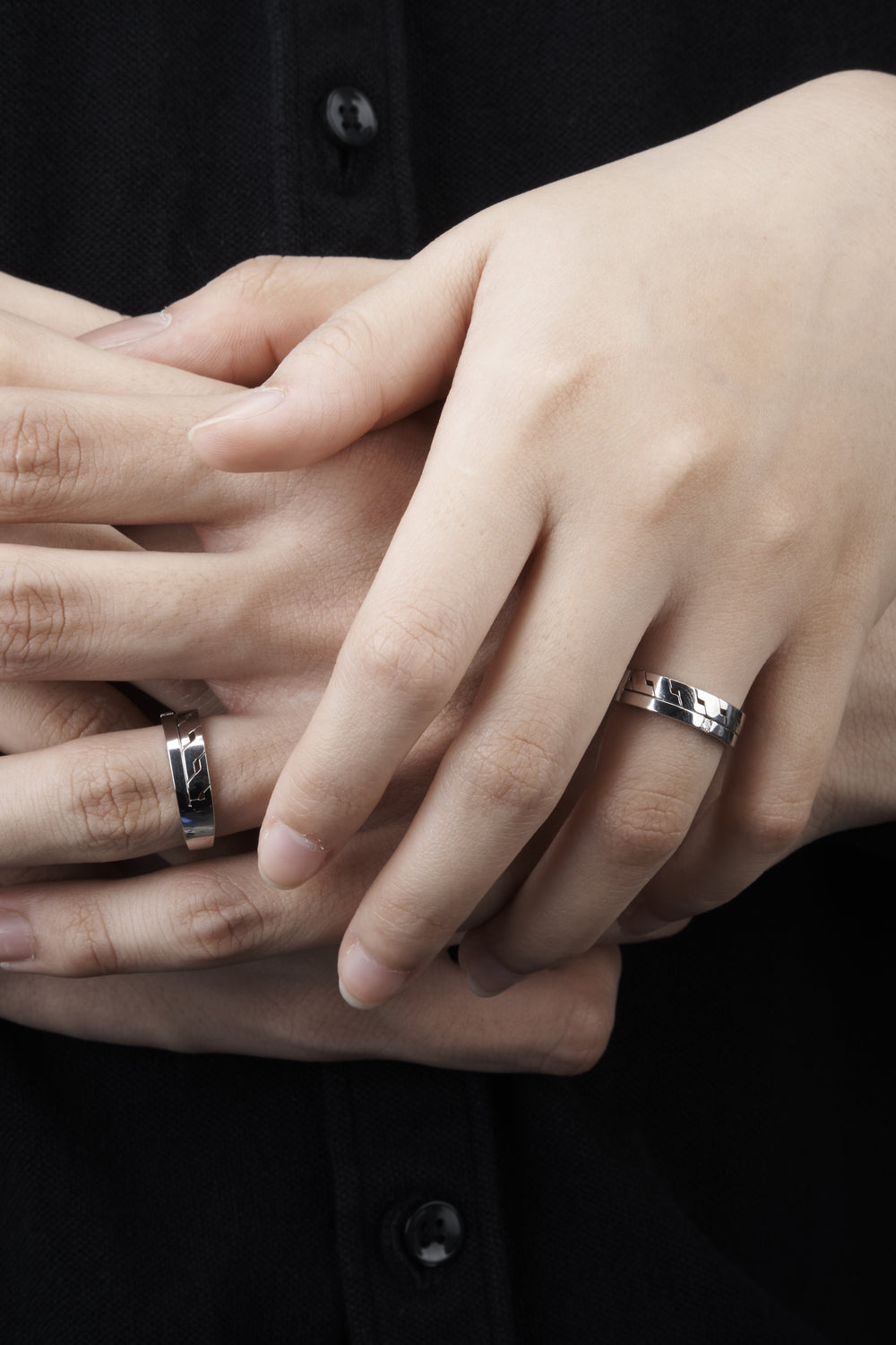 Nhẫn cưới trắng xoàn tấm 2 màu Bảo Tín K&K Vàng kiểu Ý 750 đính Kim cương