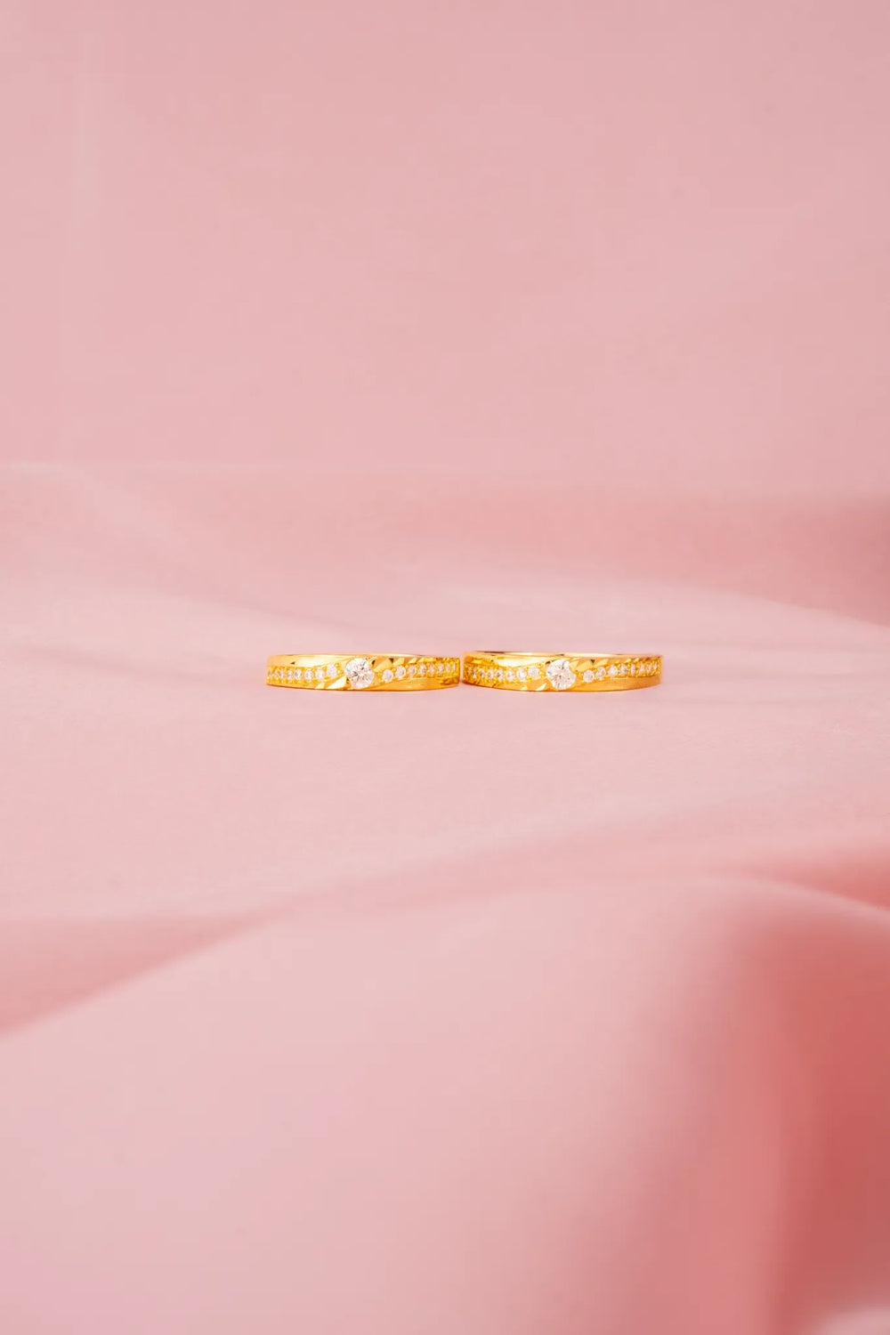 Nhẫn Cưới Hột Chìm Viền Tấm Gợn Sóng Vàng 16K Đính Đá CZ Bảo Tín K&K
