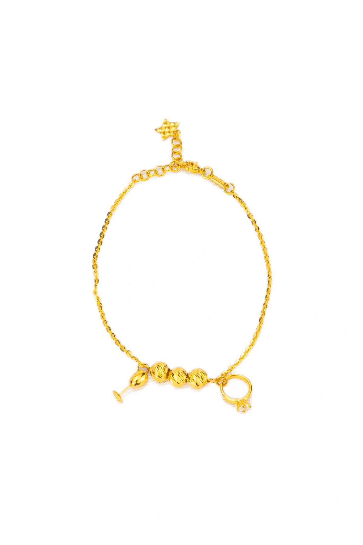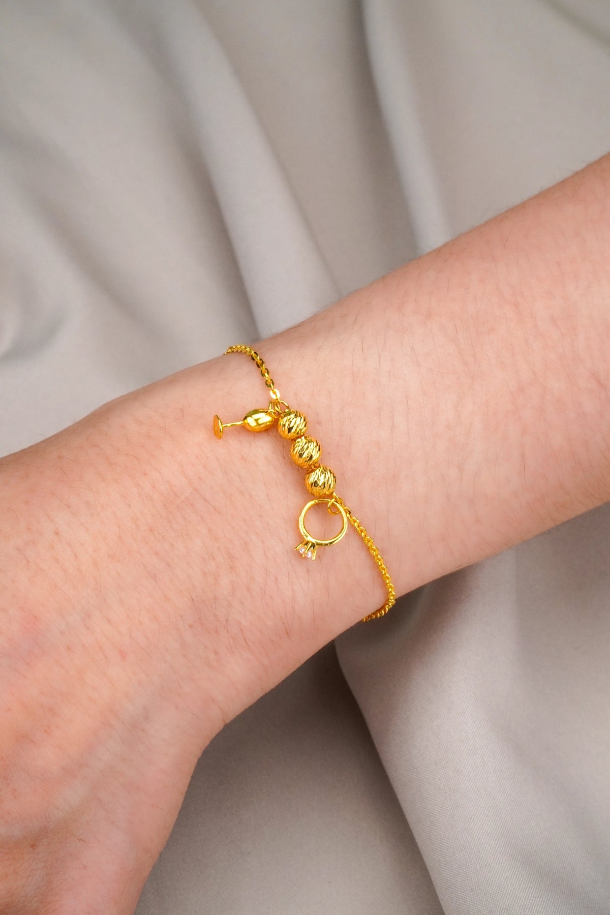 Lắc Tay Chữ Cong Bi Charm Đính Đá CZ Vàng 16K Bảo Tín K&K