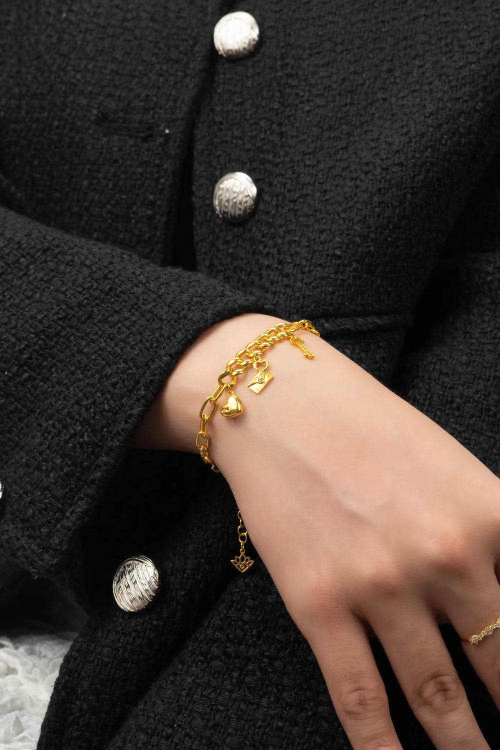Lắc Tay Love Lock Charm Vàng 16K đính đá CZ Bảo Tín K&K