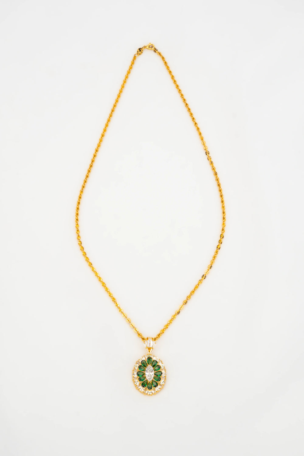Mặt Kiểu Đá Xanh Lá Đính Đá CZ Vàng 16K Bảo Tín K&K