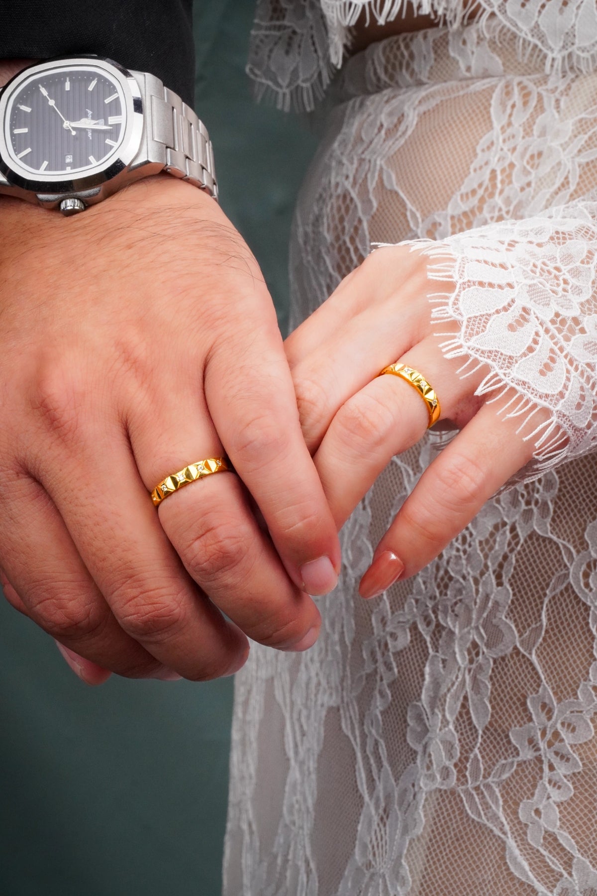 Nhẫn Cưới Kiểu Thoi Tấm Đính Đá CZ Kiểu Ý 750 Bảo Tín K&K