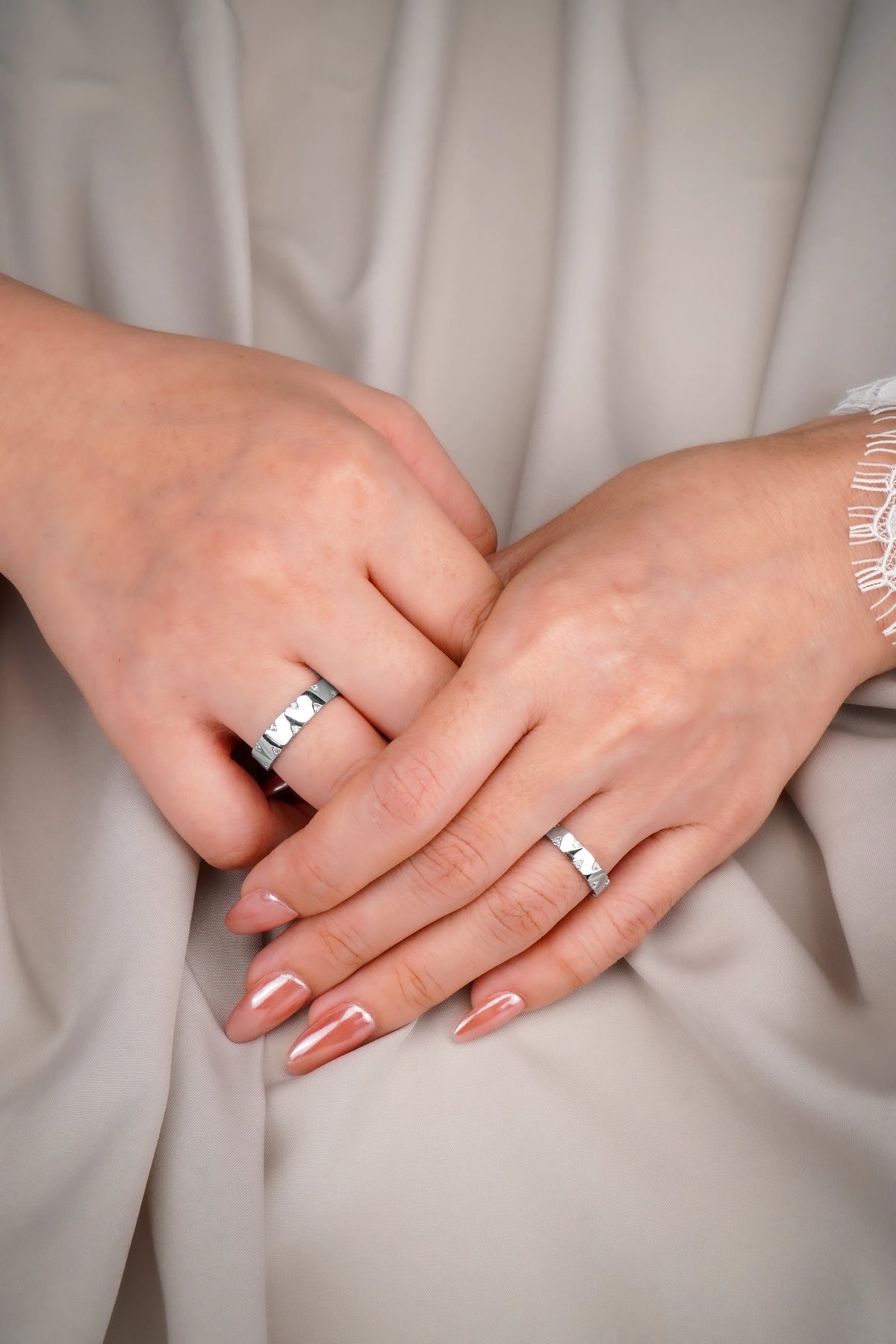 Nhẫn Cưới Kiểu Viền Tấm Tam Giác Đính Đá CZ Kiểu Ý 750 Bảo Tín K&K